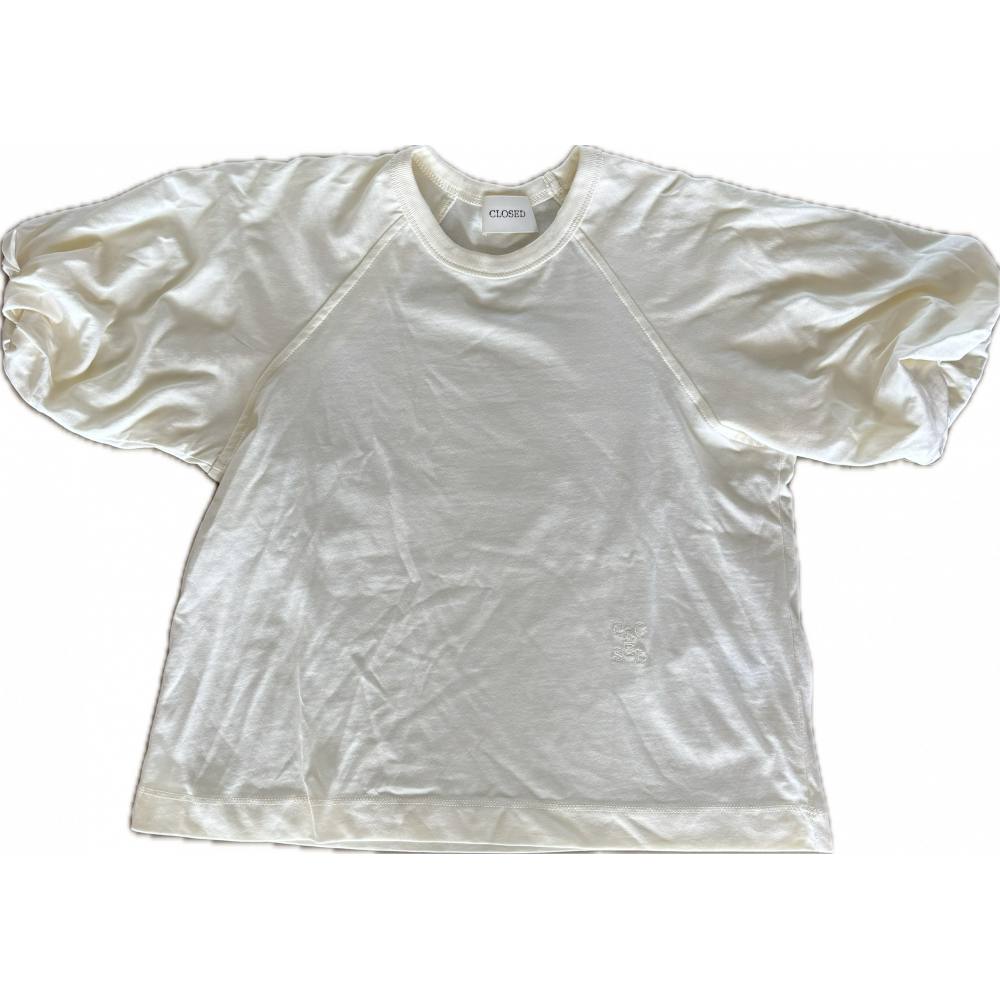 T-shirt à manches larges, coupe décontractée. En jersey de coton bio avec col rond côtelé, manches raglan et plis froncés. Broderie monogramme discrète à la taille.