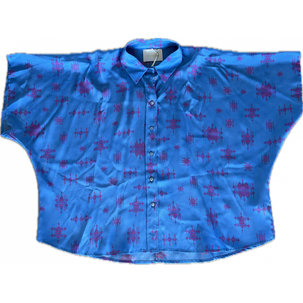 Chemise coupe carrée avec manches de kimono courtes et petits boutons en nacre