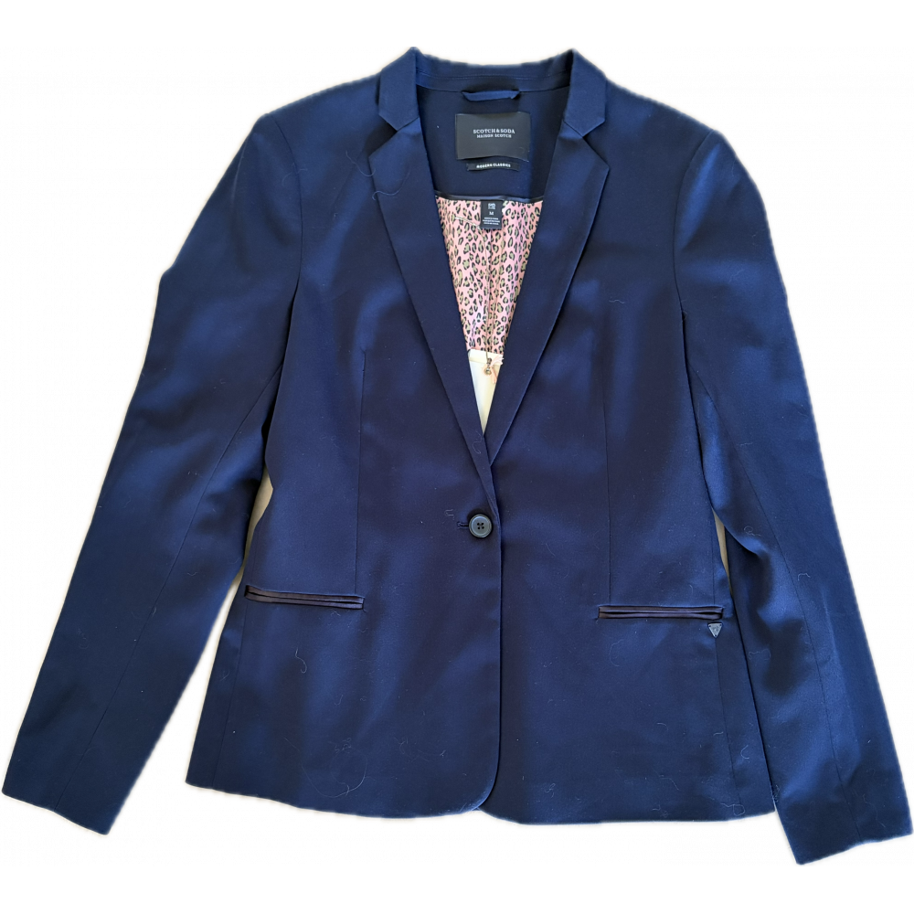 Blazer bleu marine doublé léopard rose