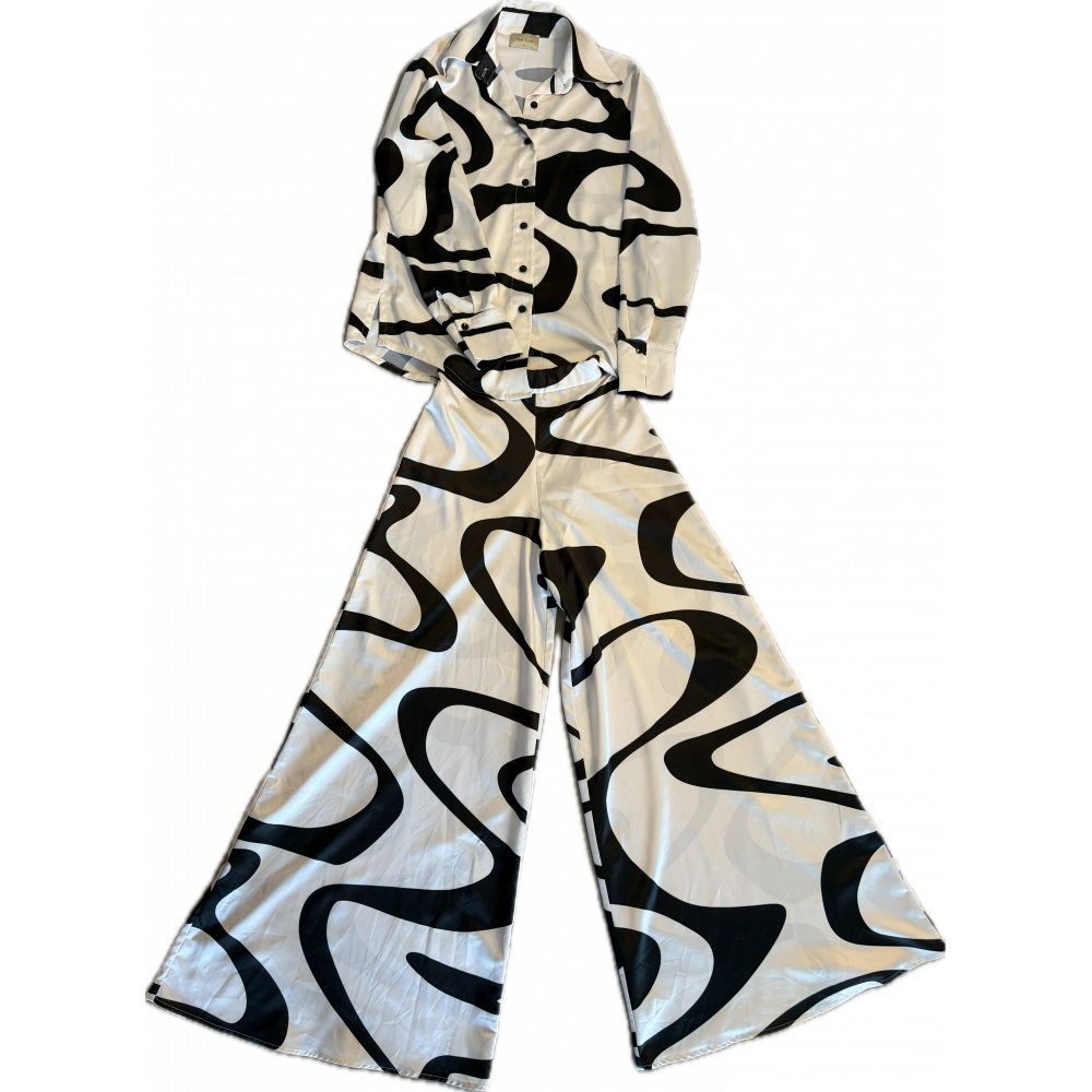 Ensemble chemise manches longues et pantalon large taille elastique